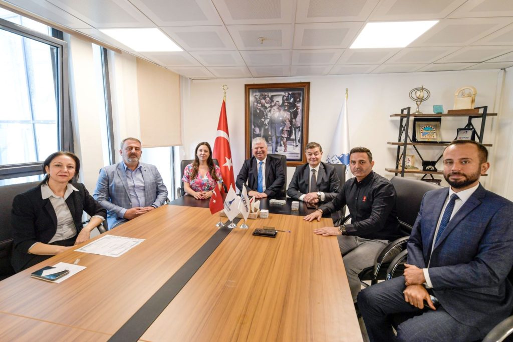 Bergama Ticaret Odası Başkanı Lütfi Kolat, Yönetim Kurulu Üyesi Salim Zeki Kurşun ve Genel Sekreter Gülay Koç; İzmir Büyükşehir Belediyesi Başkan Vekili Mustafa Özuslu’nun da katılımıyla İzmir Fuarcılık Hizmetleri Kültür ve Sanat İşleri Tic. A.Ş. (İZFAŞ) Genel Müdürü Canan Karaosmanoğlu Alıcı ile bir araya geldi.