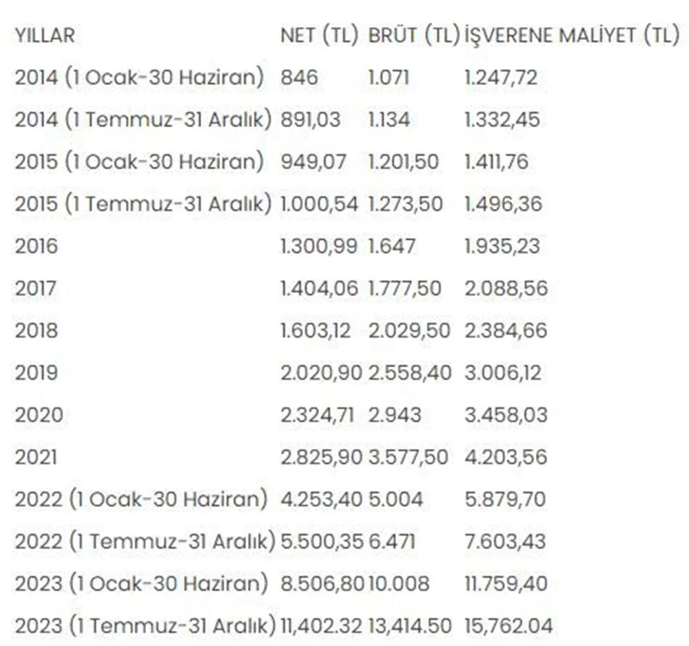 Bu yılının ocak-haziran döneminde net 8 bin 506 lira olarak uygulanan asgari ücret, 1 Temmuz’dan itibarıyla net 11 bin 402 liraya yükseltilmişti.