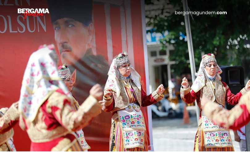 Kutlamalar, Türkiye Kuva-yi Milliye Mücahitler Derneği Bergama Şubesi Halk Oyunları Ekibi’nin gösterisiyle renklendi. Ardından öğrencilerden Gülce Delen, “Bergama” isimli şiirini okudu. Törenler, Bergama Belediyesi ve Halk Eğitim Merkezi halk oyunları ekipleri ile Kılıç Kalkan Derneği’nin gösterileriyle sona erdi.