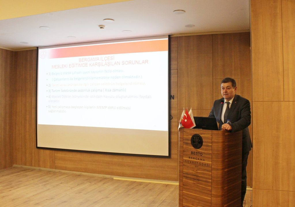 Bergama Ticaret Odası’nda düzenlenen “Devlet Destekleri ve Teşvikler” bilgilendirme seminerinde İşveren, İstihdam, İhracat, Girişimcilik Destekleri ile birlikte Mesleki Eğitimde Ustalık Telafi Programı hakkında detaylı bilgiler verildi.
