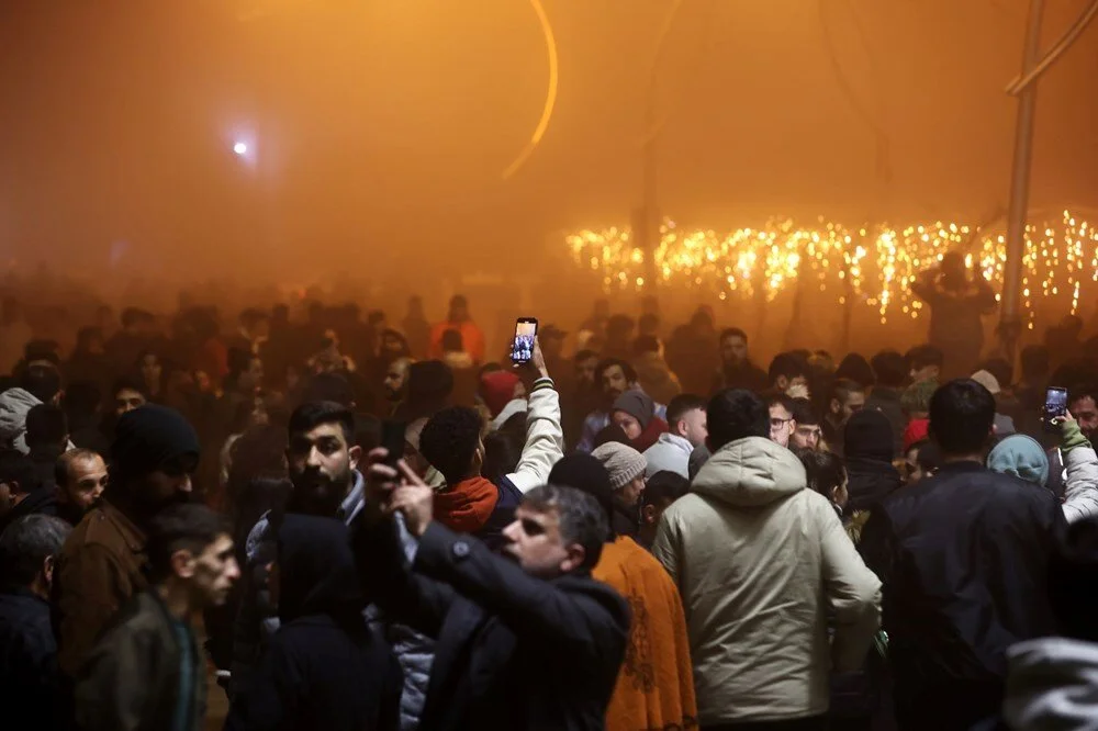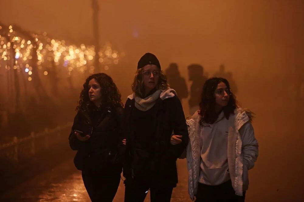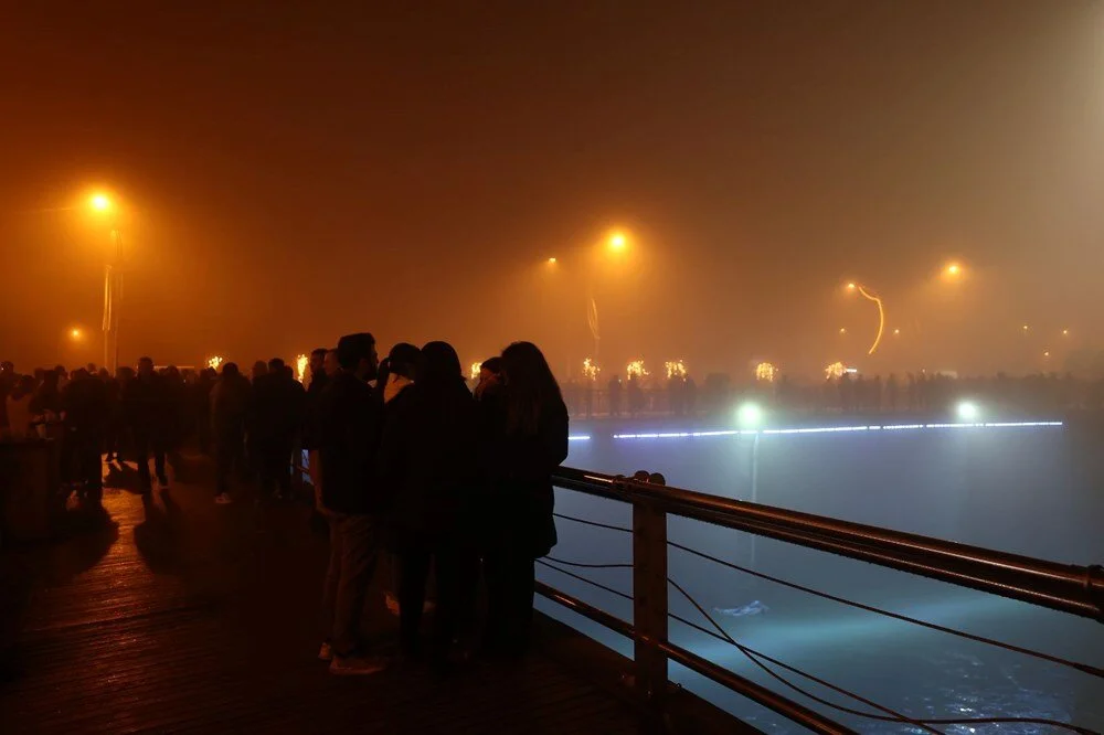 Yoğun sisin kapladığı Hatay’ın merkez Antakya ilçesinde vatandaşlar, akşam saatlerinden itibaren Cumhuriyet Meydanı’nda toplandı.