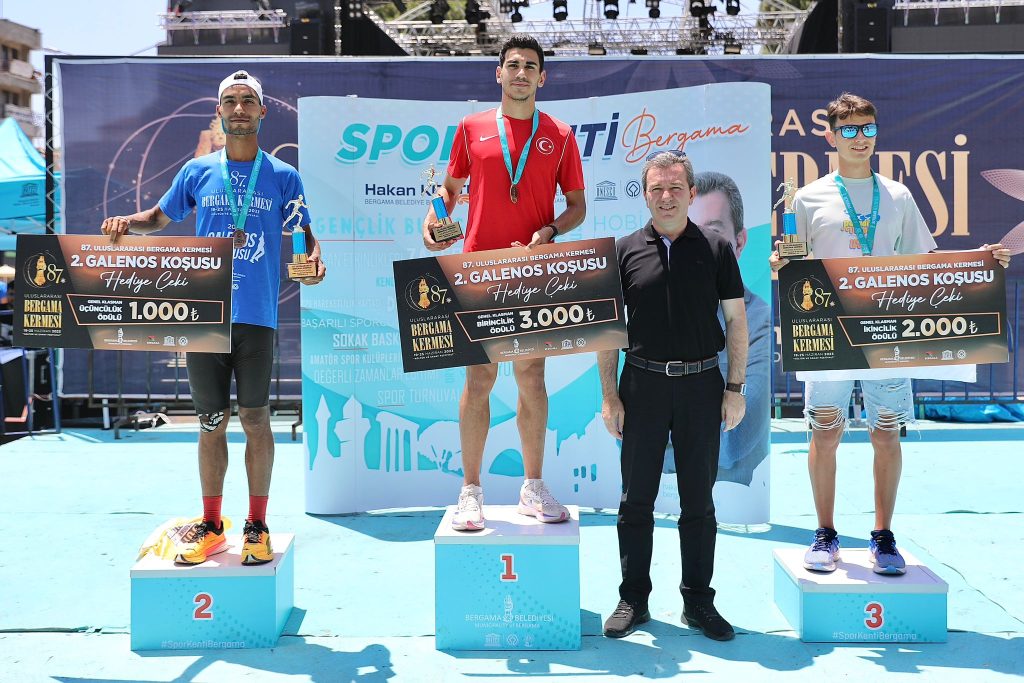 87. Uluslararası Bergama Kermes Festivali kapsamında bu yıl 2. düzenlenen Galenos ve Halk Koşusu kadim şehir Bergama’nın tarihi sokaklarında gerçekleştirildi. Startını Belediye Başkan Yardımcısı Aşkın Uyar’ın verdiği Galenos ve Halk Koşusu’na çok sayıda sporcu ve vatandaş katıldı. Daha Sonra Cumhuriyet Meydanı’nda düzenlenen ödül töreninde, dereceye girenler Belediye Başkanı Hakan Koştu’nun elinden madalya ve ödüllerini aldı. Tarihi eski Bergama’nın bulunduğu mahalle sokaklarında düzenlenen koşu renkli görüntülere ev sahipliği yaptı.