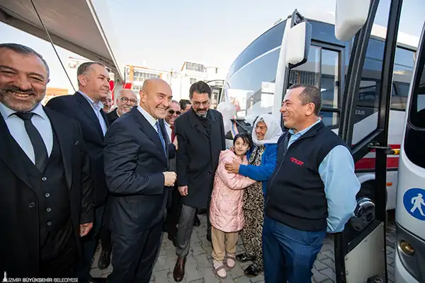Konuşmaların ardından Başkan Soyer İZTAŞIT Bergama otobüsüne binerek ilk seyahate eşlik etti.