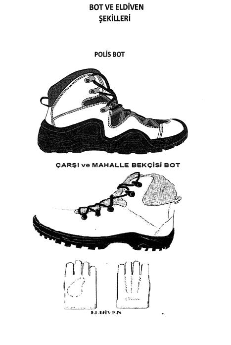 Resmi Gazete’de yayınlanmasıyla yürürlüğe giren yönetmeliğin eklerinde polis ve bekçilerin görev sırasında giyecekleri üniformalar, ayakkabılar ve eldivenlere ilişkin çizimler de yer aldı.