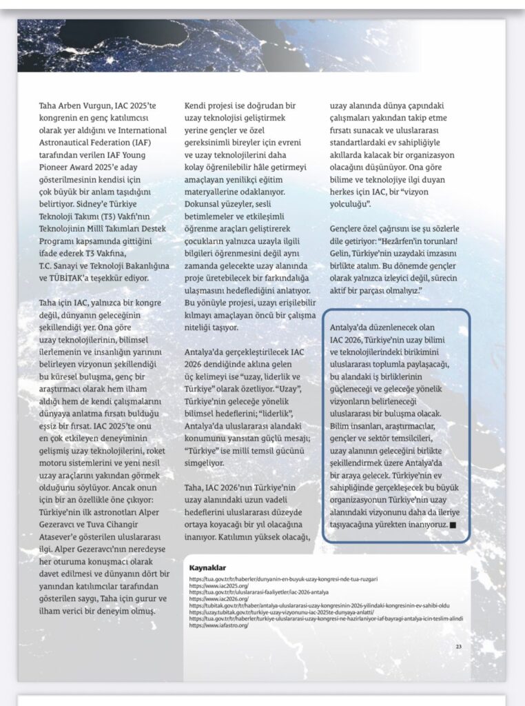 Toplumsal duyarlılık, kapsayıcı eğitim ve engelsiz yaşam teknolojileri alanlarında geliştirdiği projelerle tanınan Taha Arben Vurgun, TÜBİTAK tarafından 1967 yılından bu yana yayımlanan Bilim ve Teknik Dergisi’nin Ocak sayısındayer aldı.