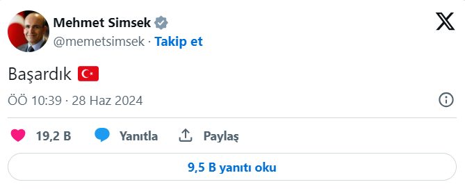 Hazine ve Maliye Bakanı Mehmet Şimşek, FATF’ın kararını resmi açıklamadan önce sosyal medya platformu X hesabından “Başardık” mesajı ve Türk bayrağı emojisiyle paylaştı. Bu paylaşım, Türkiye’nin kara paranın aklanmasının önlenmesine yönelik yürüttüğü çabaların başarılı sonuç verdiğini gösteriyor.