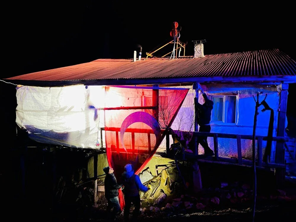 Yine askeri yetkililerce verilen acı haberin ardından şehidin baba ocağı Türk bayraklarıyla donatıldı.