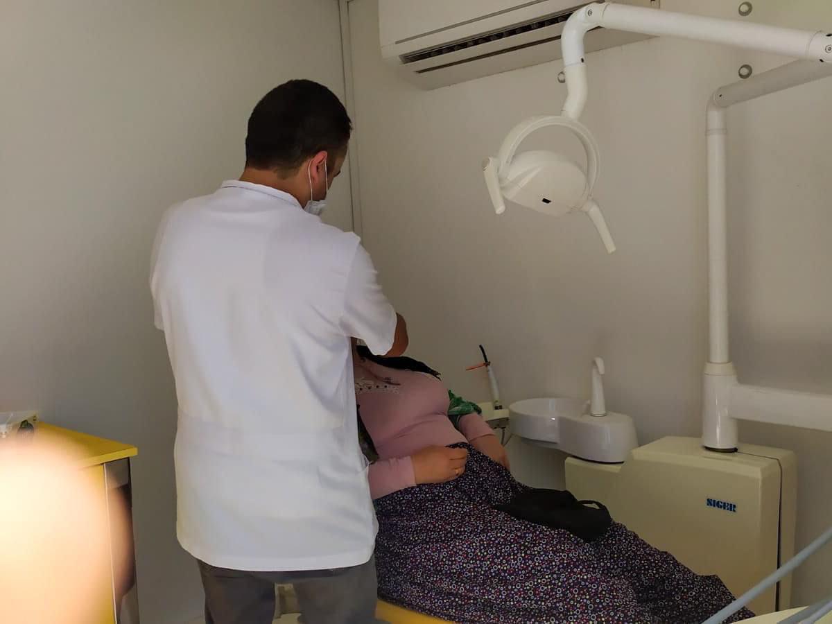 Kınık’ta gezici diş sağlığı aracında tarım işçilerine sağlık taraması Kınık Belediyesi tarafından hayata geçirilen “Ağız ve Diş Sağlığı Gezici Teşhis ve Tedavi aracı” sağlık hizmetini mevsimlik tarım işçilerinin ayağına götürüyor.