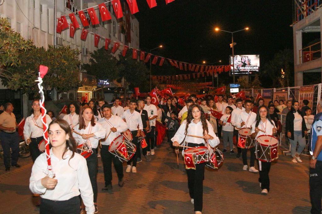 Kınık’taki 100. Yıl kutlamalarının son günü olan 29 Ekim akşamı binlerce vatandaşın katılım sağladığı Fener Alayı ve Kortej Yürüyüşü saat tam 20:23’te başlatılarak günün anlam ve önemine vurgu yapıldı.