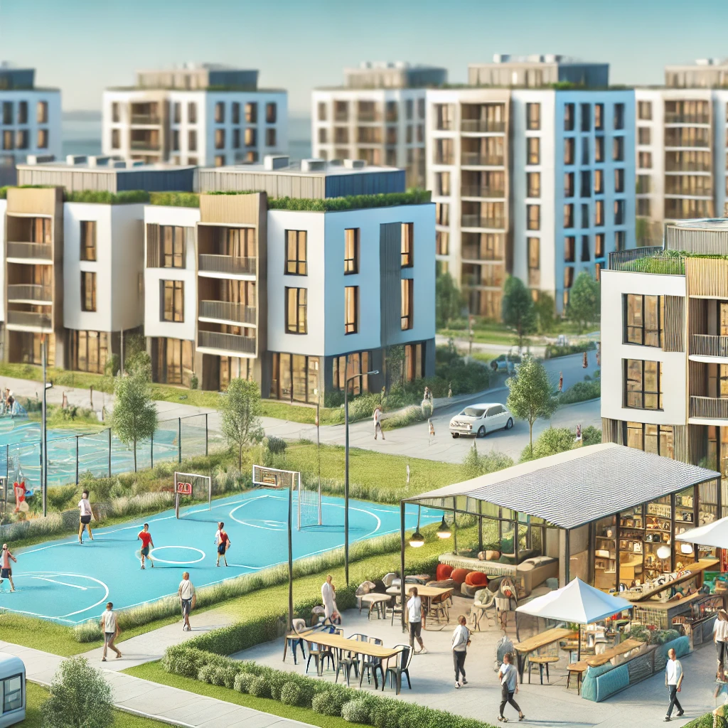 Bu konut sitesinde sosyal alanlar, etkinlik merkezi, cafeler, eğlence ve spor tesisleri, çamaşırhane gibi yapılaşmalar oluşturulsa..