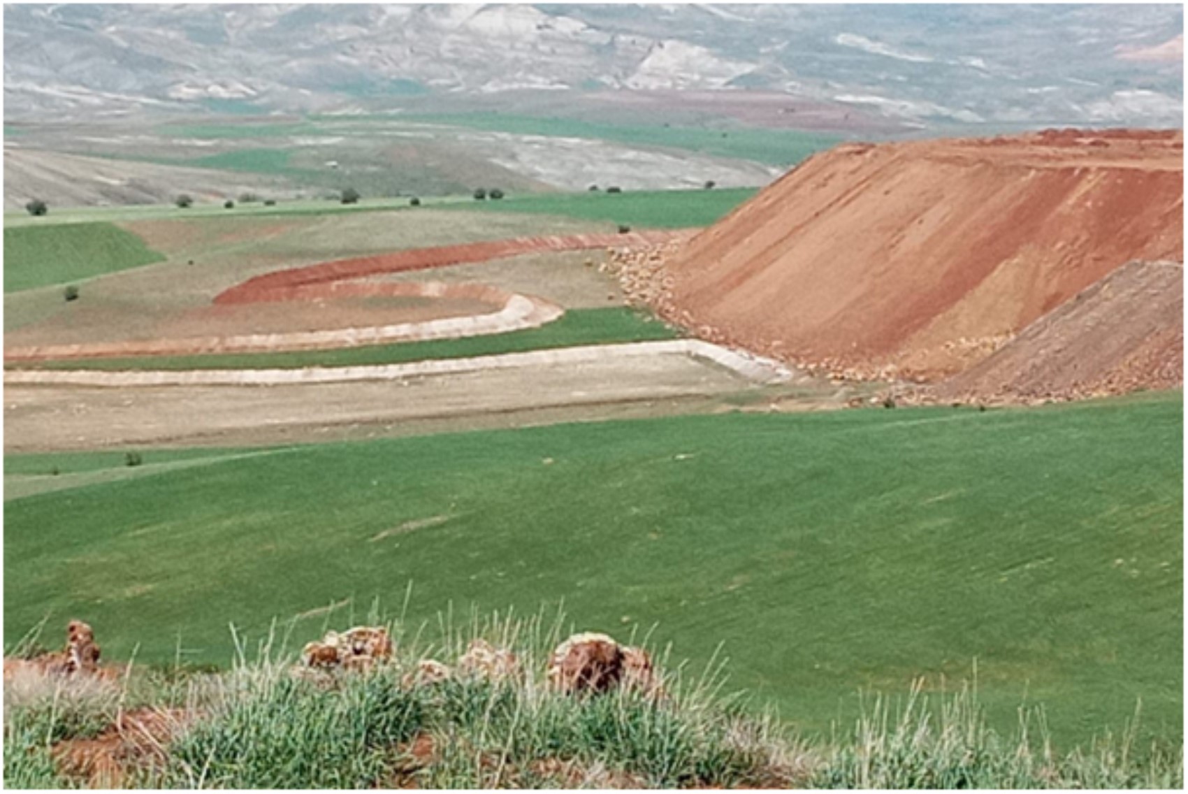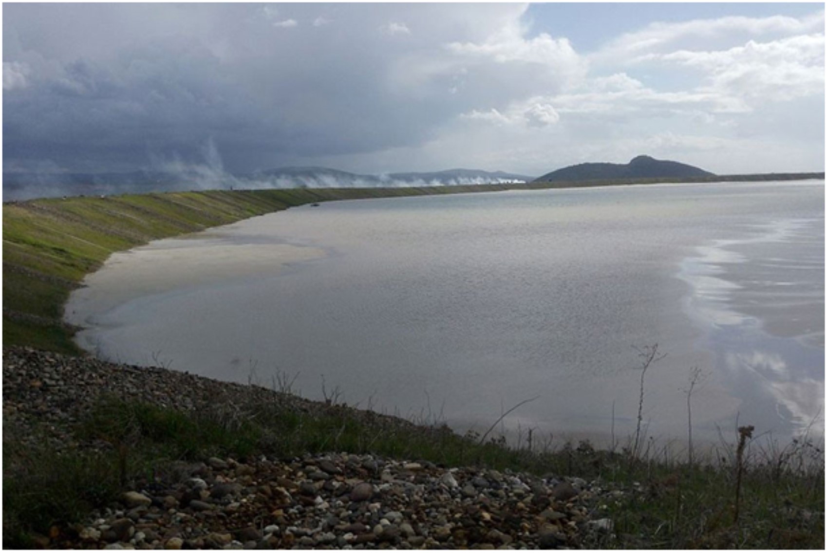 (Bergama Ovacık siyanürlü altın madeninin atık barajı.Bir tane yapılacak diye başladılar, bu üçüncüsü: Pek romantik görünüyor ama içi zehir dolu. Foto: Evrensel)