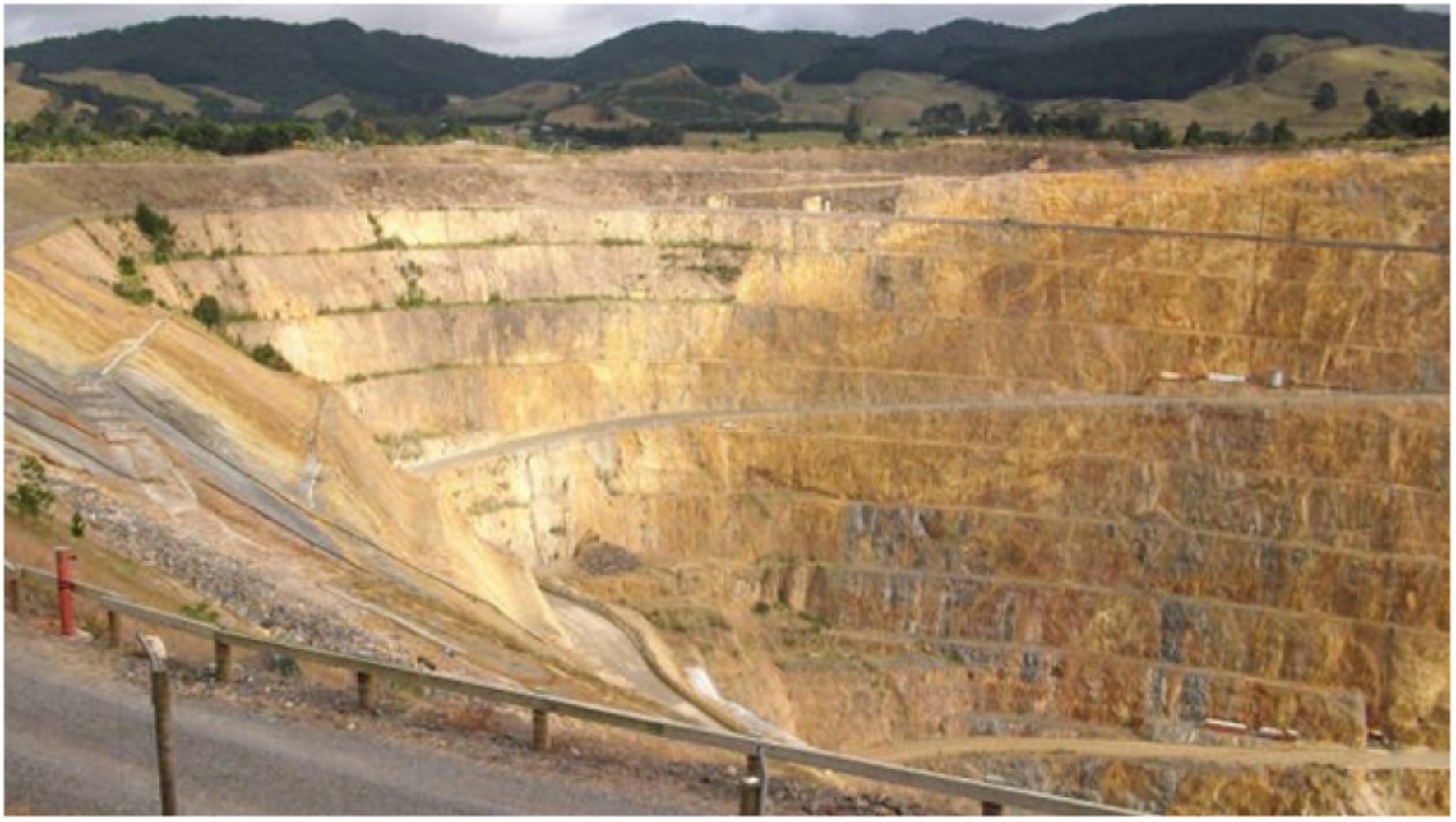 (Yeni Zelanda’da WaihiHill siyanürlü altın madeni. 2020’ler.)